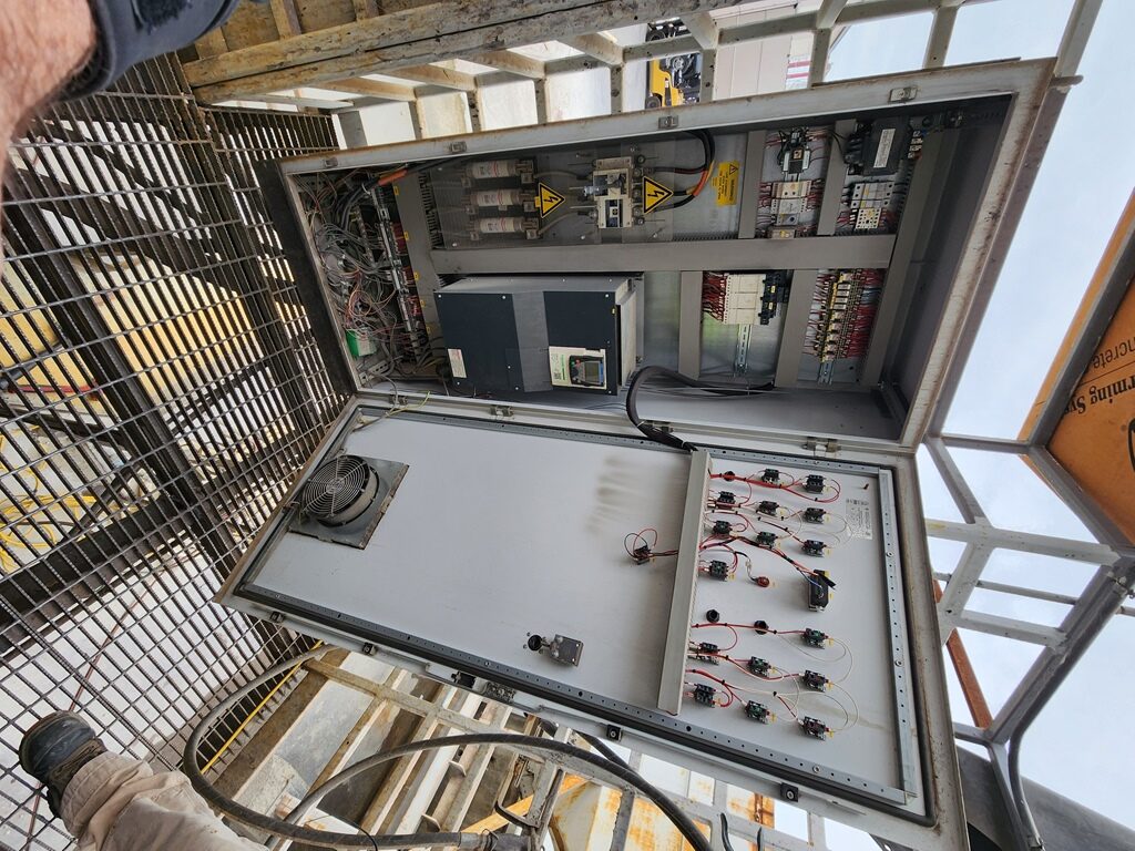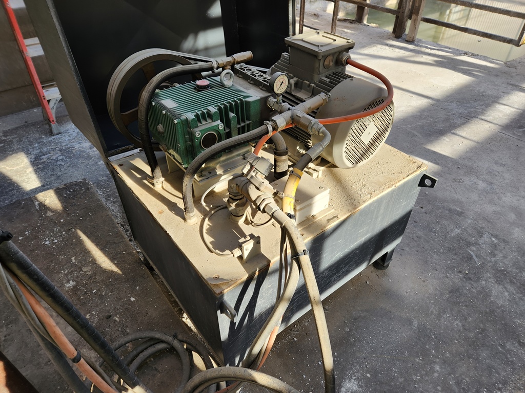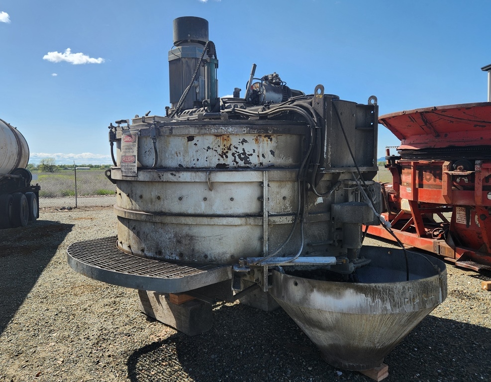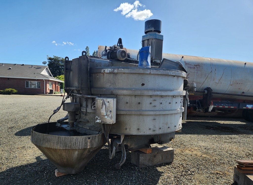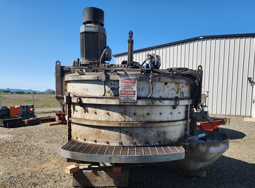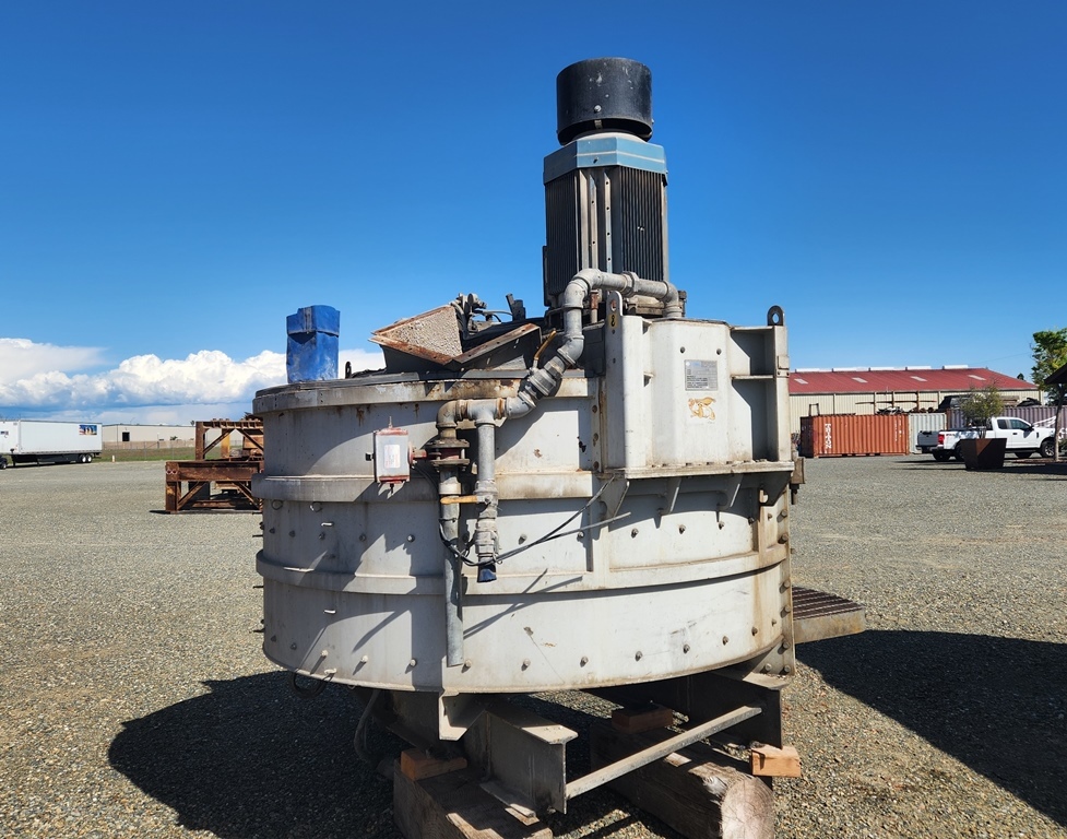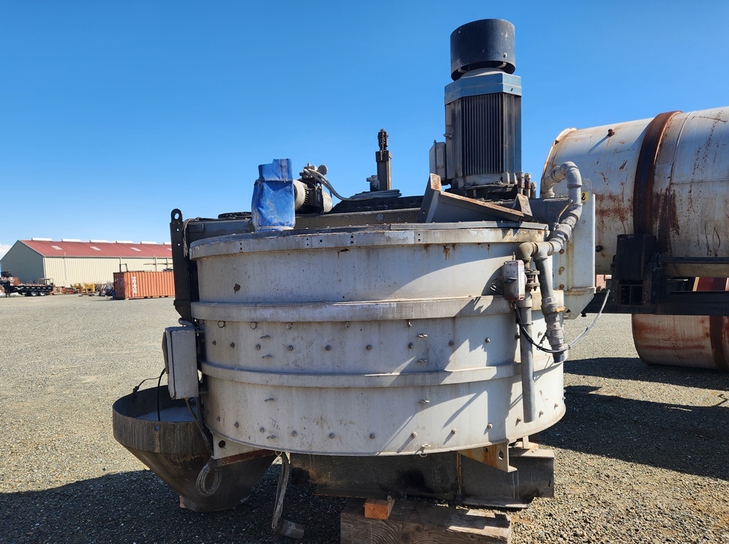 2015 – SICOMA MP 1875/1250 High Speed Planetary Countercurrent Concrete Mixer, 94” diameter chamber, 2.4 yard loading capacity, hydraulic discharge gate, 60 h.p. electric mixer drive motor; electric motor control panel with fused disconnect, Altivar ATV71 variable speed mixer motor starter, starters and controls for electric oil pump, hydraulic discharge gate, lid lifter, and start / stop control buttons all mounted in a NEMA 12 weather proof steel enclosure. 15 kW electric high pressure water washout system with Idromeccanica Bertolini CK 120 PP spray pump, hose & hand-held wash wand. Date of Mfr. 2015; S/N 14954. Inventory of spare tub liners, arms, and mixing blades included.