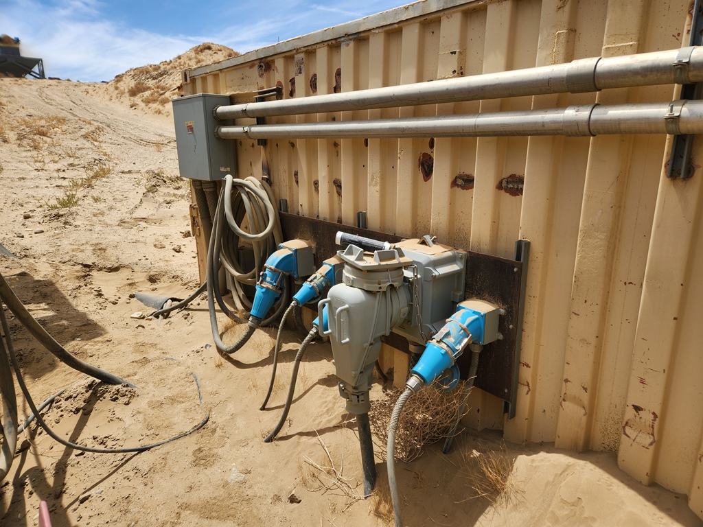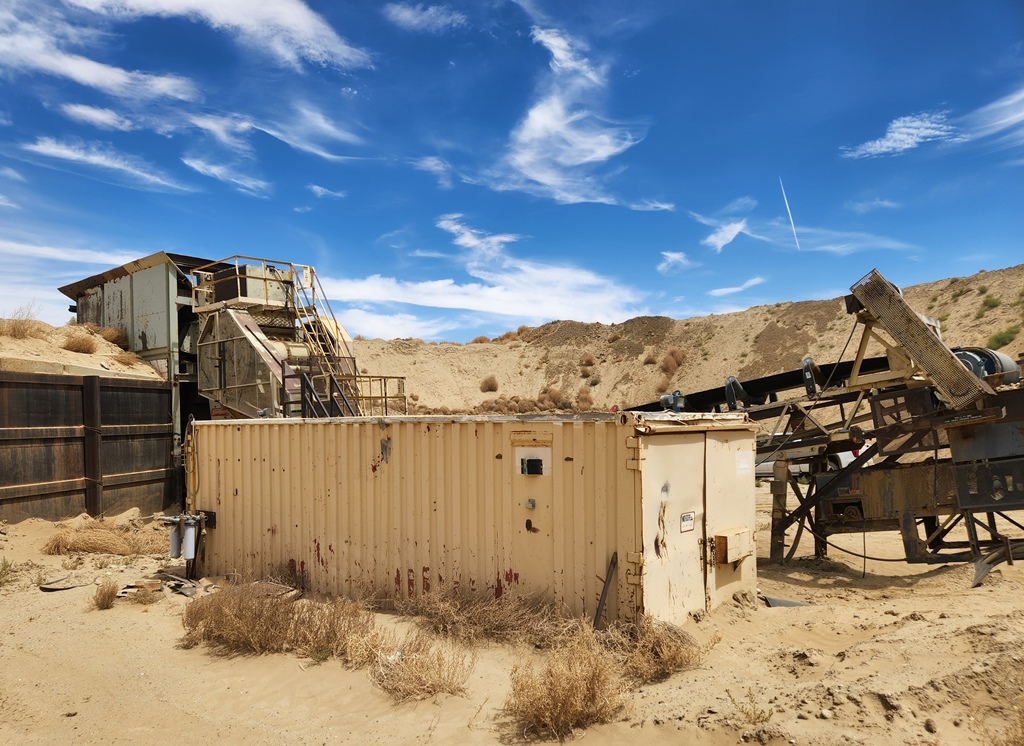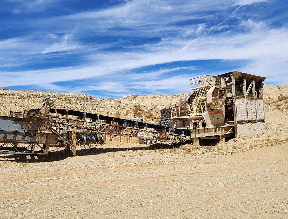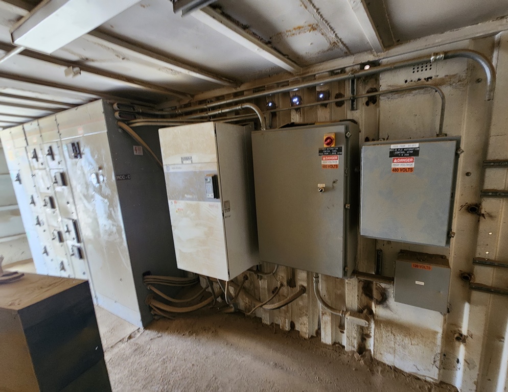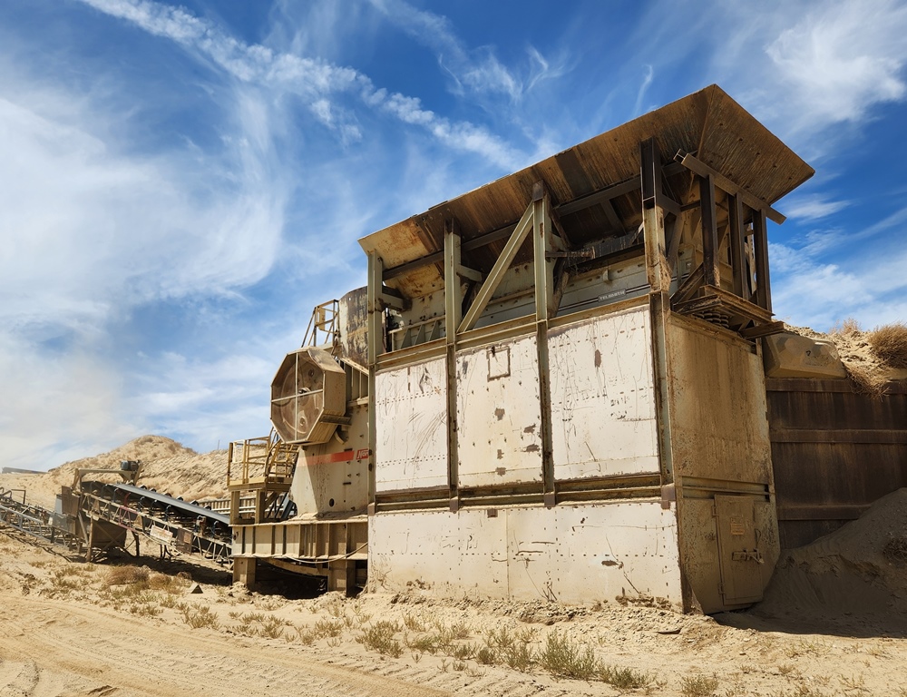 METSO-Nordberg 43” x 52” Primary Jaw Crushing Plant 250 h.p. electric crusher motor, V-belt drive with guard, grease lubricated crusher bearings, 12’ wide x 22’ long 1” steel plate feed hopper with bolt on ¾” steel liners, Telsmith 60” wide x 22’ long vibrating grizzly feeder with solid impact deck and two stage stepped 48” long fines bypass sections with Grizzly Spring Fingers, 75 h.p. variable speed electric motor, V-belt drive, Type 280HF two shaft-four bearing flow-thru oil bath vibrator assembly, fines bypass chute under grizzly springs to conveyor, 48” wide x 60’ long under crusher discharge conveyor with 25 h.p. electric motor, V-belt drive & Dodge #6 shaft mounted gear reduction box. Crusher & conveyor mounted on steel fabricated stationary support structure. Feeder mounted on separate skid base structure with steel bulkheads on three sides sectioned into three level bolt together sections totaling 24’ overall feed height. Electric Motor Control Center mounted in a 8’ wide x 35’ long steel Conex container with main disconnect, soft start for crusher motor, variable speed controller for feeder motor, magnetic starter for conveyor, all pre-wired to exterior wall mounted plug-in disconnects with SO cords to electric motors. Feeder Model C-18012, S/N 323M2045H; Date of Mfr. 1991. Crusher Model VB-1311, S/N VB-1311-173, Date of Mfr.1990. Crusher only production capacity: 300 to 365 tph set at 4½” minimum closed side setting; 465 to 555 tph set at 7”; 590 to 695 tph set at 9”. These production numbers do not include the bypassed fines through grizzly. Total throughput production 750 to 900 tph depending on feed gradations and conditions.